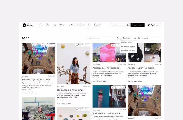 Раздел «Блог» содержит статьи и комментарии Авторов, известных экспертов, кураторов, историков искусства, а также публикации самой платформы.