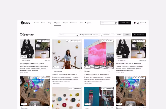 Раздел «Обучение» — постоянно пополняемая база образовательных мероприятий по искусству, а также новостной путеводитель по образовательным программам и курсам, проводимым в текущий период в пространстве СНГ.